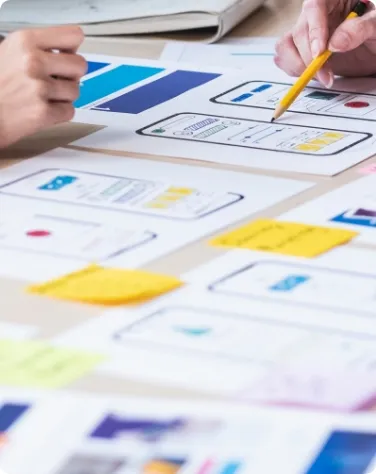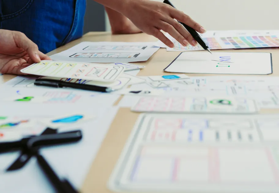 お客様のサービス・アプリ・システムについて、ビジョン(目的)をヒアリングさせていただき、そこに向けて市場調査やペルソナ選定、行動分析を徹底的に行います。ターゲット層の動向を明確にした上で、シミュレーションや項目選定、トンマナ設定などを行い、UXを作り込んでいきます。その後のUI作成ではターゲットに応じて、使用フォント、フォントサイズ、余白、カラーリングなどの細かい設定・調節を行います。